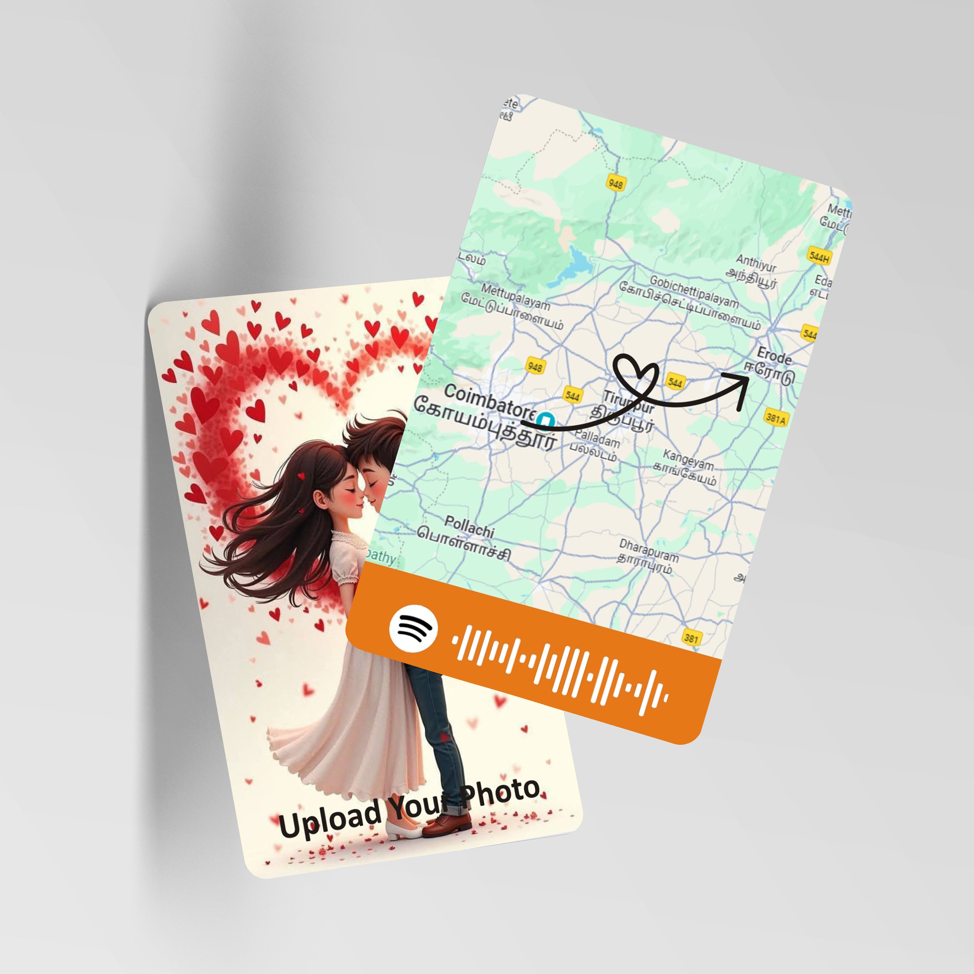 The card has blank space at the front for you to customise by your photo and writing your name or text at the back of the card.